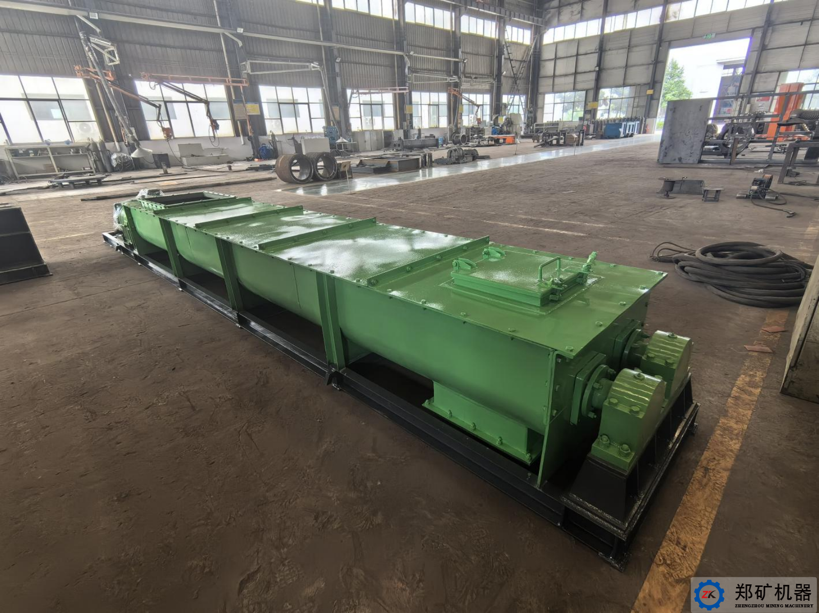 該客戶是國內(nèi)環(huán)保行業(yè)頭部上市企業(yè),常年專注環(huán)保領域研發(fā)及應用,致力于為國內(nèi)客戶提供生態(tài)環(huán)境綜合治理系統(tǒng)解決方案。客戶公司作為項目的總包商,對設備質(zhì)量要求較高,2024年4月訂購河南鄭礦機器雙軸攪拌機一臺,用于飛灰壓濾板框泥餅攪拌破碎及混料使用。2024年5月設備制造完畢,如期發(fā)貨。